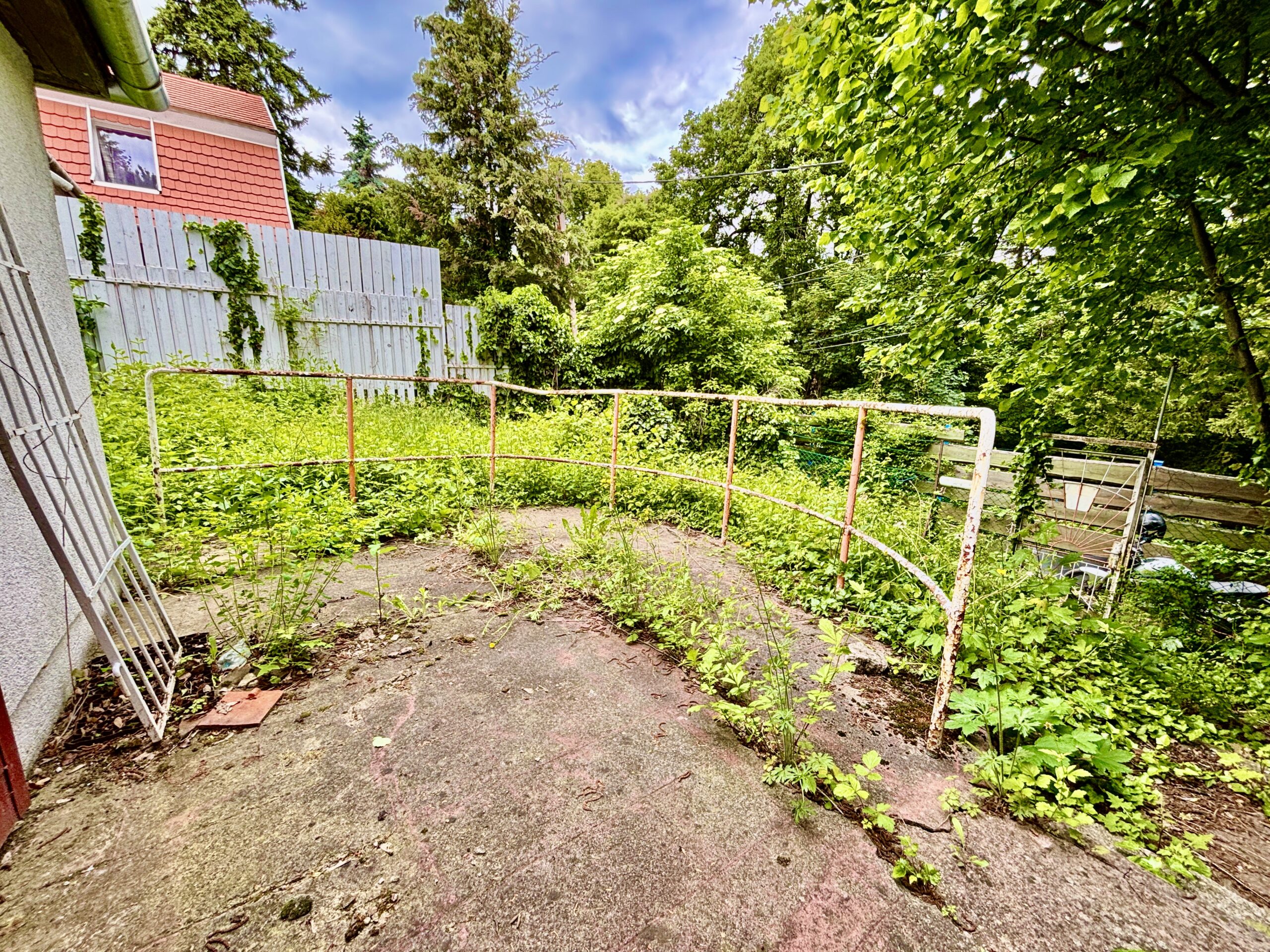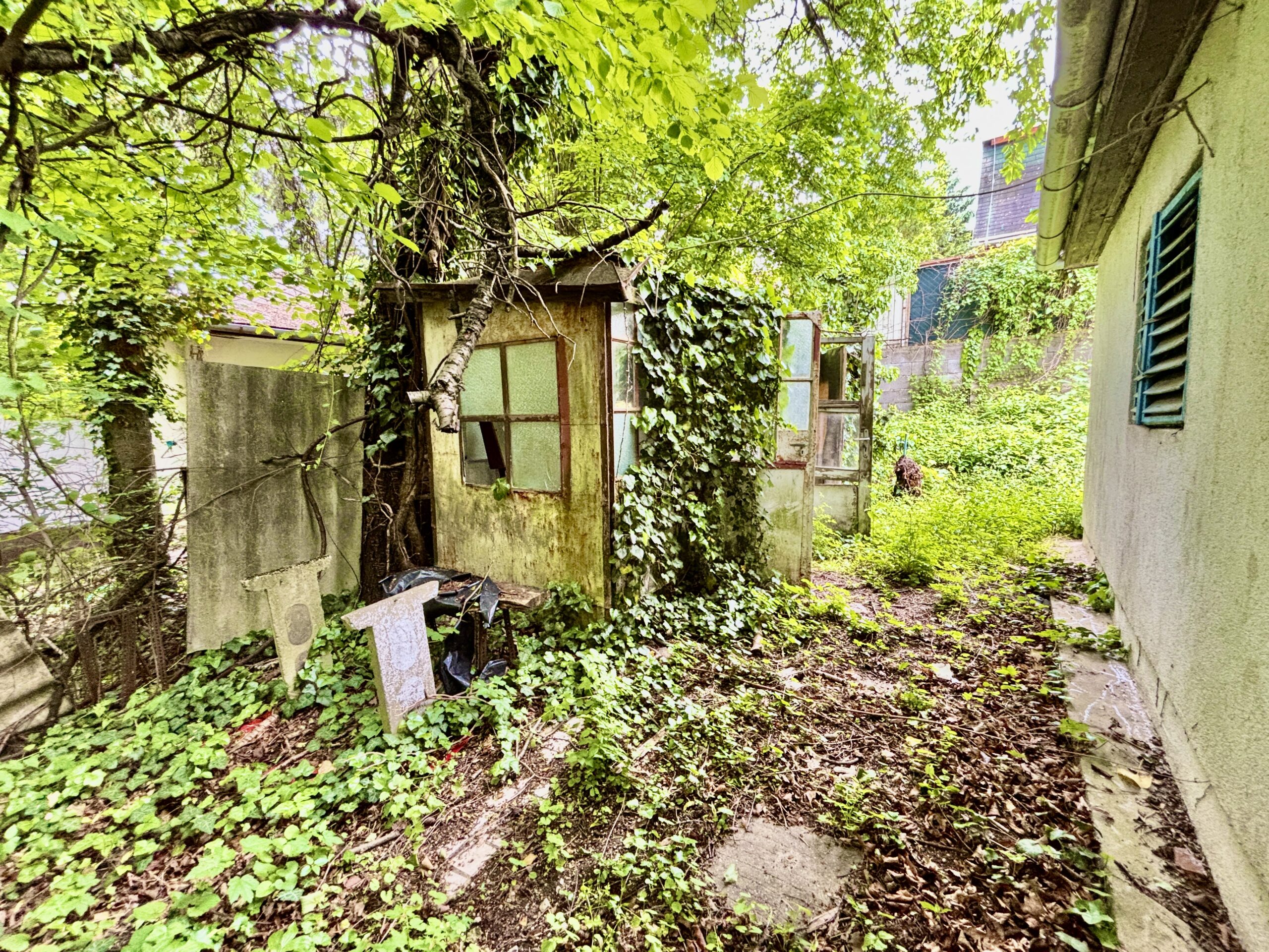 Természetes szépség: Egy 300 m2-es, enyhén lejtős telek ősfákkal, mely intimitást és hűs árnyékot biztosít a nyári napokon.