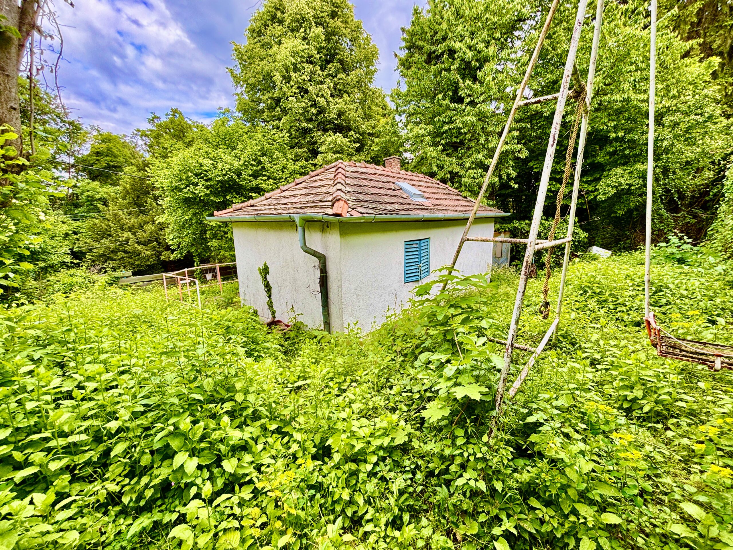 Hangulatos kuckó: Egy 30 m2-es, egyszintes házikó két szobával és fürdőszobával, ideális hétvégi kikapcsolódáshoz vagy a természet közelségét kedvelőknek.