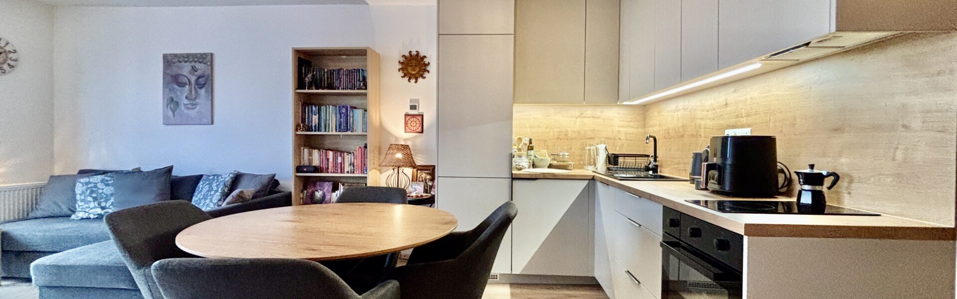 Vadonatúj belső terek: A 34 m²-es lakás minden eleme frissen lett beépítve, az új burkolatok és a modern konyhabútor azonnal beköltözhetővé teszik az ingatlant.